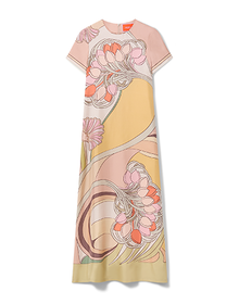 Swing Dress Tulip Placée Pale Pink in Silk Twill