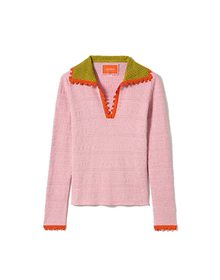 Crop Polo Color Block Yellow & Pink in Embroidered Silk Cotton Blend